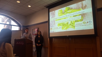 Aleksander Gulkewicz '20 and Mariah Matias '20 represented the Office of Sustainability's Metrics and Reporting team by presenting on Lehigh's commitment to the Real Food Challenge. Robb and Aguado Lira, members of the Eco-House, gave a presentation by undergraduates entitled Swap Shop: Reducing Waste through Trade. Additionally, Eco-Rep coordinators Matthew Fainor '20, Jane Le '20, Natalie Rosato '20, and Lexy Tracy '21 presented on the recent expansion of the LU Eco-Rep Leadership Program.