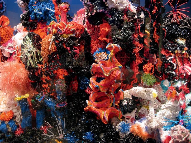 The Crochet Coral Reef project resides at the intersection of mathematics, marine biology, handicraft, and community art practice. Through a process of collective creativity, the project responds to the environmental crisis of global warming and the escalating problem of oceanic plastic trash by highlighting not only the damage humans do to the earth’s ecology, but also our power for positive action. The Crochet Coral Reef collection has been exhibited in art and science museums worldwide, including the Andy Warhol Museum (Pittsburgh), the Hayward Gallery (London), the Science Gallery (Dublin), and the Smithsonian's National Museum of Natural History (Washington, DC). The project's Satellite Reef program has engaged thousands of people from all walks of life in more than a dozen countries. The Crochet Coral Reef is one of the largest participatory science + art projects in the world.